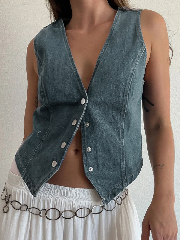 V Neck Denim Vest Tank Top