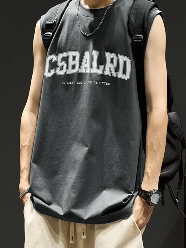 Men’s Letter Print Loose Casual Vest