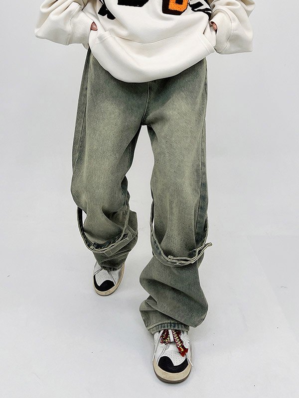 Retro Straight Style Distressed Washed Loose Jeans