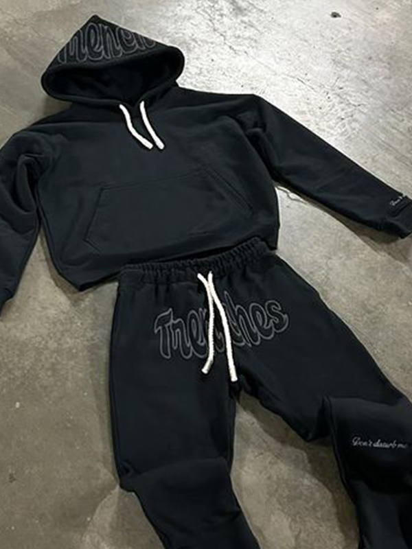 Men’s Foam Letters Flame Print Oversized Hoodie
