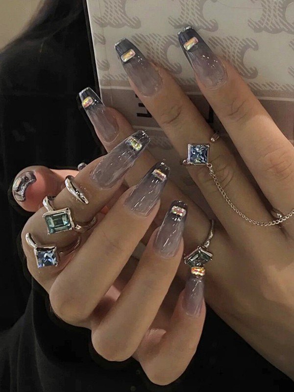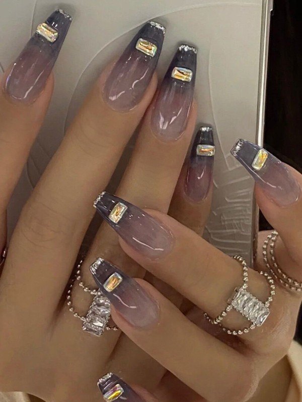 Design: 12 Inclusive Sizes For One Set, With Fake Nails Glue, Features Chunky Rhinestone Decors On It