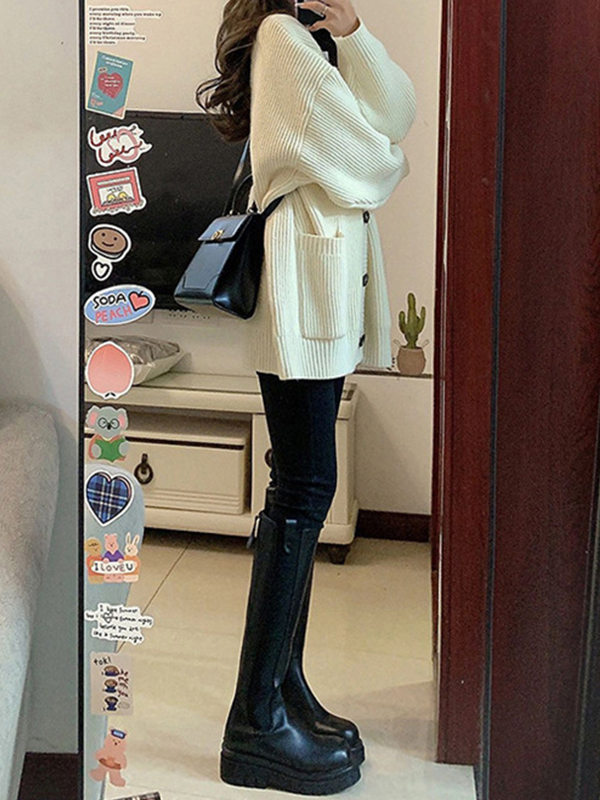 Be the first to review “Preppy Solid Color V Neck Baggy Cardigan”