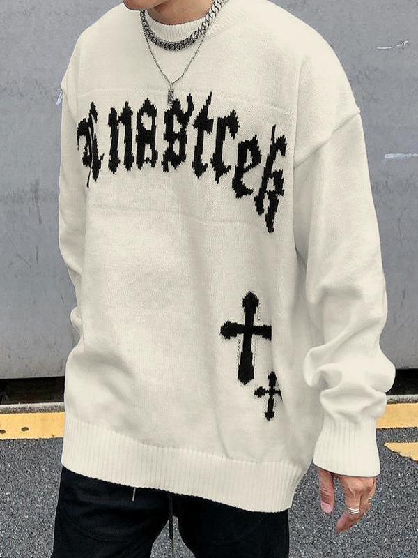 Men’s Vintage Cross Letter Print Oversized Sweater